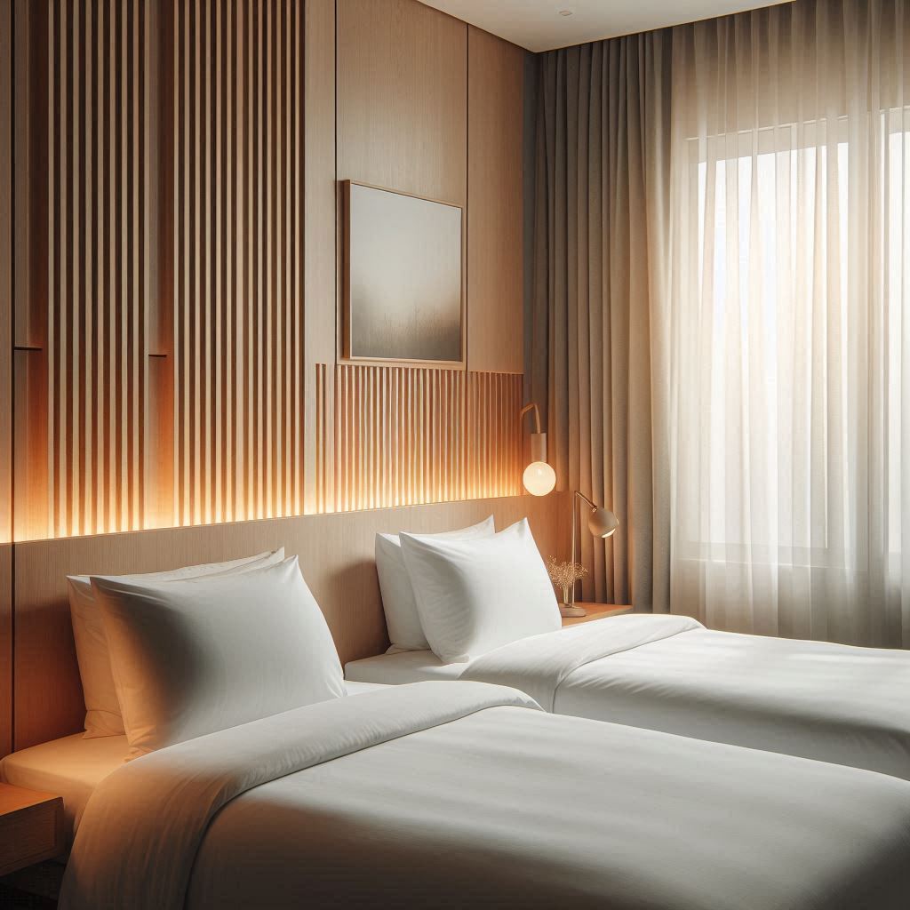 로비는 넓지 않았지만 벽면 조도가 일정하게 퍼져 공간 대비가 부드럽게 유지됐습니다. 복도를 따라 이동할 때 바닥 패턴이 일정하게 이어져 움직임이 안정됐고, 층별 안내판이 눈에 띄는 위치에 있어 방 번호를 찾는 데 여유가 있었습니다. 객실 문을 열자마자 벽면 간접 조명이 바닥선을 따라 확산되는 형태라 처음 들어서는 순간에도 실내 윤곽이 분명하게 느껴졌습니다. 냉난방은 미리 맞춰져 있어 외부의 습한 공기가 금세 사라졌고, 침대 옆 스위치 구성도 단순해 취침 조도를 바꾸기 쉬웠습니다. 작은 테이블은 표면이 평탄해 가방을 놓기 편했고, 거울은 상반신이 고르게 보이는 크기라 준비물을 정리하는 데 적절했습니다. 전체적으로 정리된 느낌의 공간이 유지돼 짧은 체류에도 편안함이 따라왔습니다.